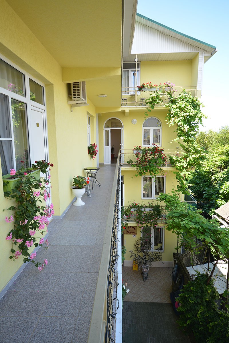 Гостевой дом «Уют» расположен в знаменитом курортном районе Адлера. До Олимпийского парка и парка аттракционов «Сочи-парк», разместившихся в Имеретинской низменности, можно доехать за 15 минут. На одинаковом расстоянии – в 4-х километрах – находятся вокзал и аэропорт.