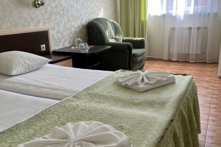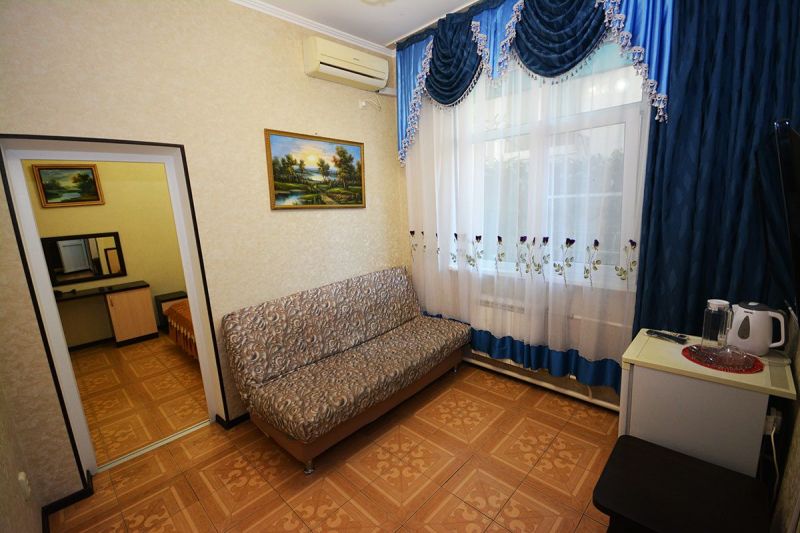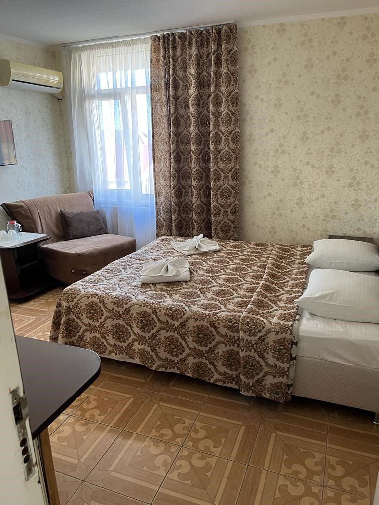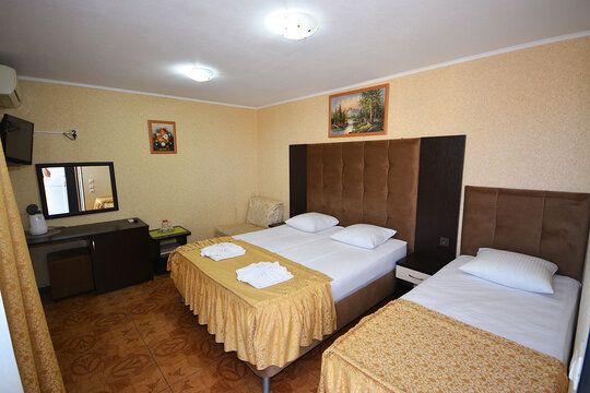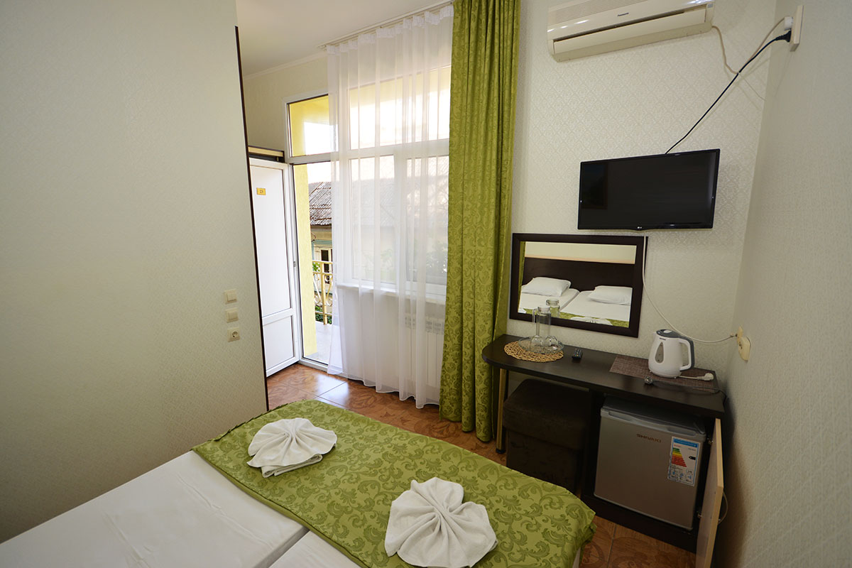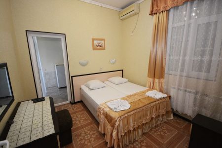Здание гостиницы занимает охраняемую территорию всего в 200 метрах от моря. В распоряжении гостей уютные и комфортабельные номера, в каждом – удобная мебель, выполненная из натуральных материалов, установлена сплит-система, есть индивидуальный санузел, телевизор и мини-холодильник.